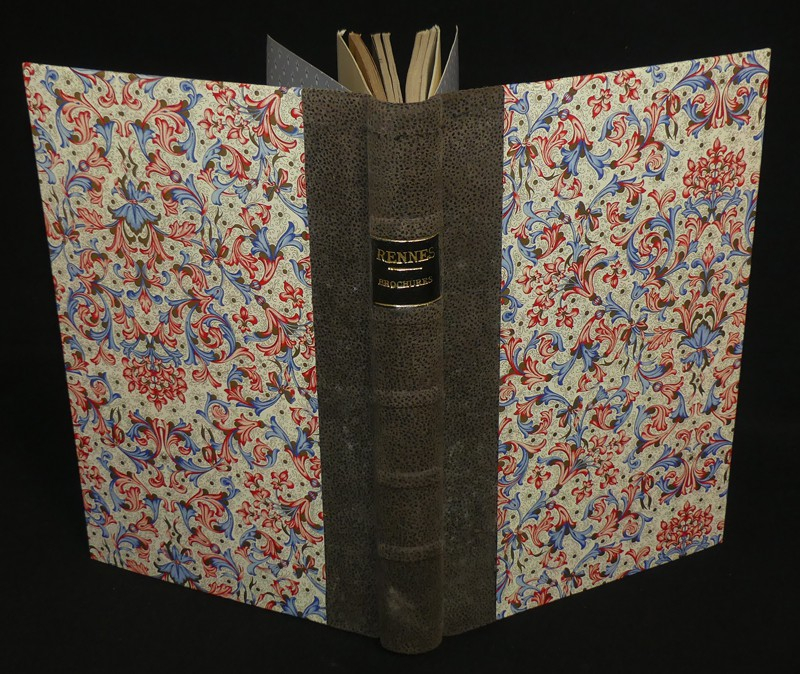 PEU COMMUN. In-4 (17,5 x 25,5 cm), reliure demi-peau, dos à 5 nerfs, pièce de titre, 4 brochures sur Rennes compilées et reliées par un amateur : 1. "La Vicomté de Rennes" (pas de mention d'auteur, extrait des Mémoires de la Société d'émulation des Côtes du Nord, T.XLIII, 1905, pages 30 à 55) // 2. "Nos ancêtres pendant la Révolution. Un aumônier des Chouans : L'abbé Nicolas-François Faligant, 1755-1813" par P. Delarue (1910, Plihon & Hommay, Librairie L. Durance, 78 pp.) // 3. "Inventaire des archives de la paroisse Saint-Sauveur de Rennes" par Gilles de Languedoc, 1720" par Paul Parfouru (Extrait du tome XXVIII des Mémoires de la Société Archéologique d'Ille-et-Vilaine, Imprimerie Eugène Prost, 1899, 82 pp. avec envoi de l'auteur) // 4. "Leperdit, maire de Rennes. La Légende et l'histoire" par Albert Macé (Plihon et Hervé, 1891, 64 pp.) ; papier bruni, par ailleurs très bon état général.