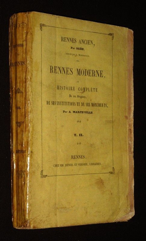 In-12 (12,2 x 18,7 cm), broché, 421 pages, sans date, tome 2 seul sur les 3 que comportent cette Histoire de Rennes ; pliures au dos, mors inférieur fendu et recollé, plats salis, en l'état.