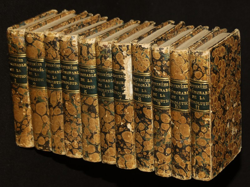 Onze petits volumes in-32 (6,7 x 10,5 cm), charmante reliure d'époque plein papier, pagination multiple dans chaque tome, série complète, rare ensemble ; coiffes et coupes frottées sur l'ensemble des volumes, reliure du tome 7 abîmée au mors supérieur, par ailleurs assez bon état.
