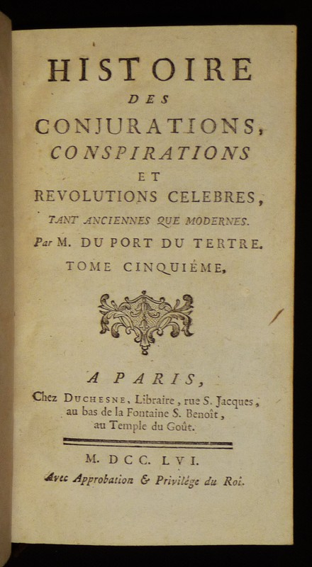A Paris, chez Duchesne, libraire, rue S. Jacques, au-dessous de la Fontaine S. Benoit, au Temple du