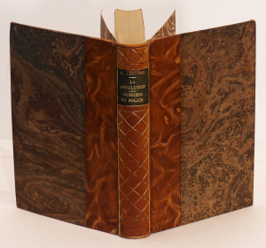 Trois volumes in-12 (12,8 x 18,7 cm), reliure demi-peau, dos lisse orné de croisillons dorés, têtes dorées, couvertures en couleur conservées, les 6 premiers tomes (sur 15) de "La Petite Histoire" de G. Lenôtre : 1. Napoléon, croquis de l'Epogée // 2. Femmes, amours évanouies // 3. Paris et ses fantômes // 4. Versailles au temps des Rois // 5. La Révolution par ceux qui l'ont vue // 6. Dossiers de police ; quelques petits frottements au cuir, par ailleurs bon état.