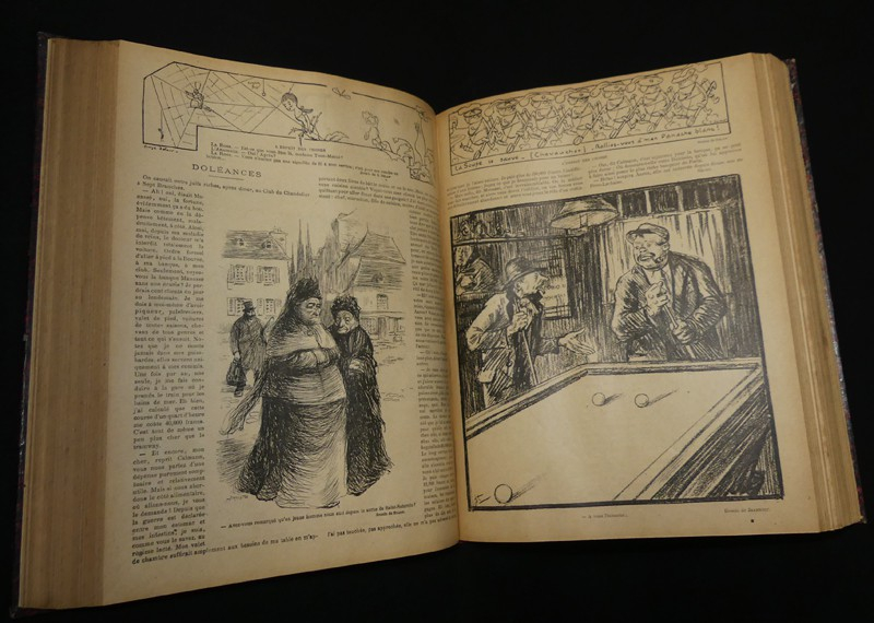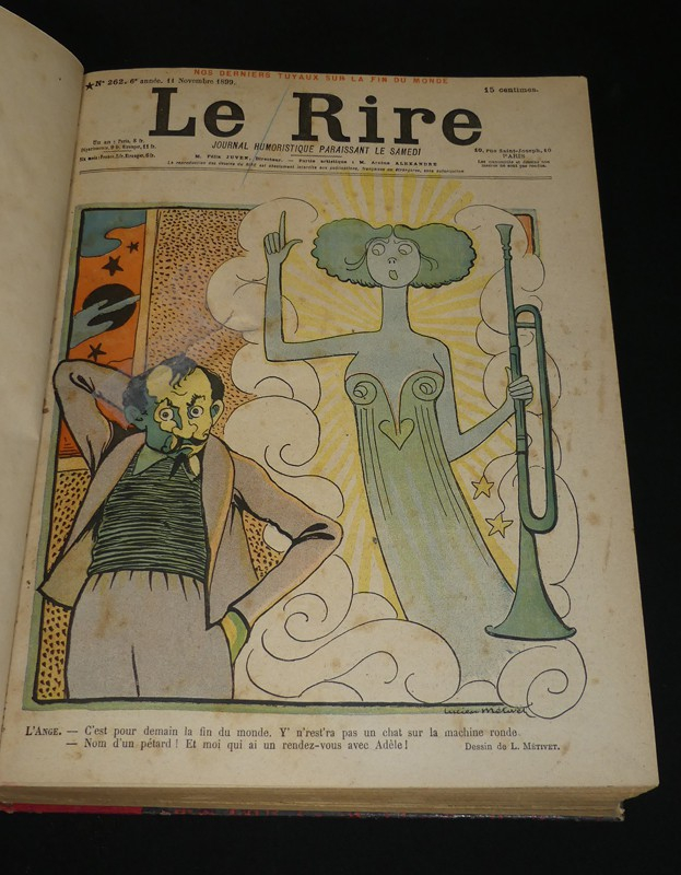 Fort volume in-4, demi-toile rouge, contient du n°262 (11 nov 1899) au n° 321 (29 décembre 1900), couvertures conservées, bien complet de tous les numéros ; gros choc sur le premier plat avec des répercussions sur les 15 premiers numéros, sans manque de papier toutefois, l'ensemble reste en bon état.