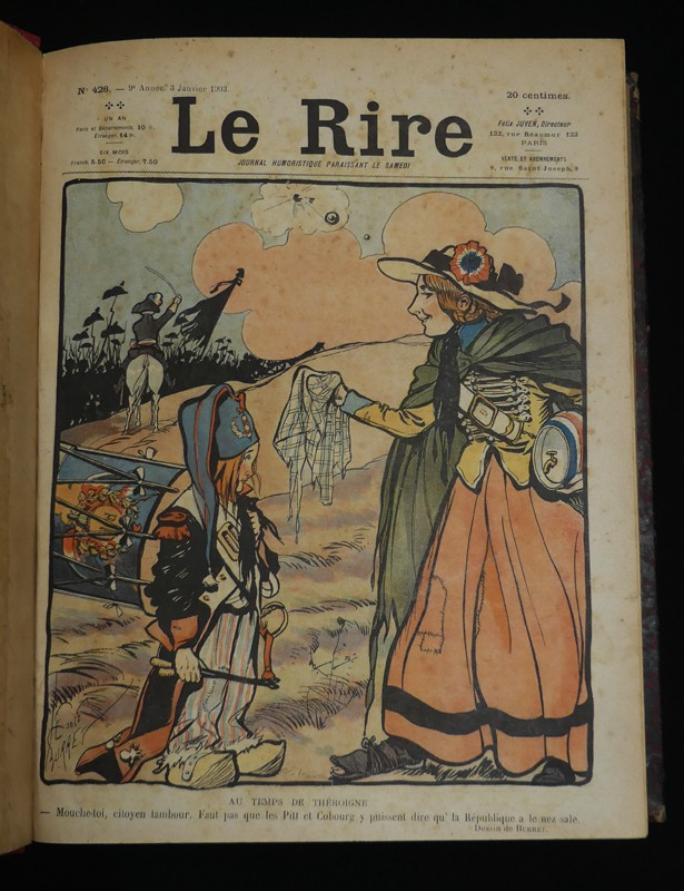 Fort volume in-4, demi-toile rouge, contient du n°420 (3 janvier 1903) au n° 430 (31 janvier 1903) puis nouvelle numérotation avec le début de la nouvelle série, du n° 1 (7 février 1903) au n° 47 ( 26 décembre 1903), couvertures conservées, bien complet de tous les numéros ; toile frottée et décolorée, intérieur très frais, bon état.