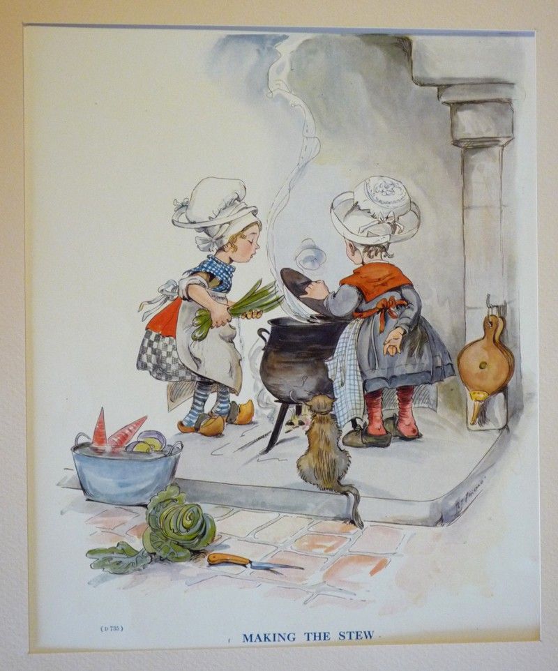 Reproduction d'une illustration en couleurs de René Vincent (image env. 23 x 23 cm sur support env. 30 x 40 cm), tirée du journal "L'Illustration" pour un article intitulé "Silhouettes et modes...