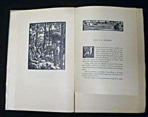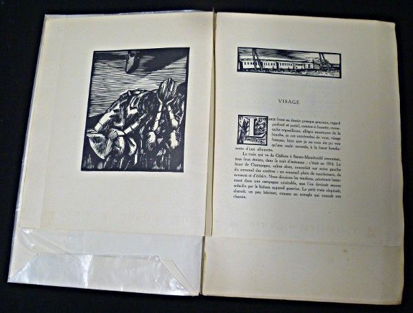 In-4 (21 x 31,5 cm.), broché, illustration sur la couverture rempliée, 195 pages, frontispices, têtes de chapitre, lettrines, culs-de-lampe, édition originale, illustrations en noir et blanc hors-texte, justificatif de tirage n°16, un des 49 exemplaires tirés sur japon, sans les suites malheureusement, gravures signées Deslignères, cahiers de longueurs différentes ; coiffes abimées, quelques rousseurs sur les bords de page, menus incidents sur les plats, par ailleurs bon état.