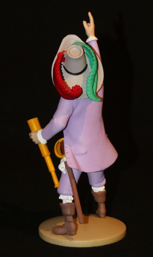 Le Chevalier de Haddoque, branle-bas' de l'album Le Secret de la Licorne. Figurine en résine polychrome (hauteur 15 cm, largeur 6,5 cm, diamètre du socle 6 cm), bien complète du passeport numéroté et du livret explicatif accompagnant chaque figurine ; sans défaut. En raison de la fragilité de ces figurines, nous ne pouvons pas les expédier, il faudra les retirer à la librairie Le Seanachi, 7 rue du faubourg Bertault à Bécherel. Merci donc de choisir l'option "retrait sur place" au moment de votre commande.