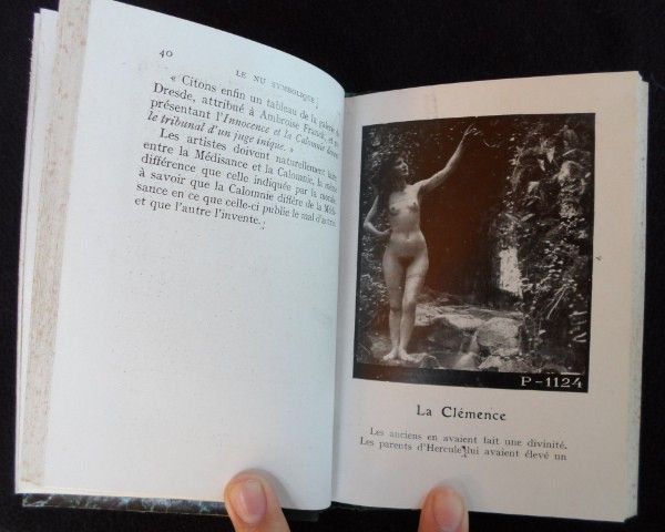 In-12 (10,5 x 15 cm.), relié demi-basane vert, 124 pages, titre doré au dos, tranches tachetées de rose, ouvrage documentaire illustré de 30 études de nu photographique noir et blanc en frontispice et dans le texte, sans date ; coiffes et mors très légèrement marqués, coins frottés, menus incidents aux plats, intérieur frais, bel état.