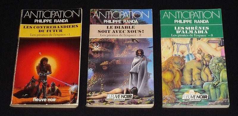 Trois volumes in-12 (11 x 17,5 cm), dos carré collé, tomes 1 à 3 des "Pirates de l'espace" : Tome 1 : Les Contrebandiers du futur (1985, 185 pp.) // Tome 2 : Le Diable soit avec nous ! (1985, 184 pp.) // Tome 3 : Les Sirènes d'Almadia (1987, 190 pp.) ; pliure au dos et mors frottés aux tomes 1 et 2, bords des plats du tome 1 frottés, coin supérieur du quatrième plat corné, assez bon état général.