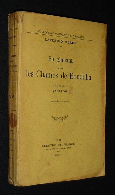 In-12 (12 x 18,7 cm), broché, 258 pages, édition originale de la traduction (malgré la mention de 3e édition) ; pliures au dos, traces et rousseurs sur les plats, petite mouillure à la coiffe supérieure, intérieur bruni, par ailleurs assez bon état général.