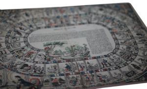 In-4 (22.5x36.5 cm), chemise cartonnée, une vignette couleur sur le 1er plat, règles du jeu de l'Oie illustrée en couleurs ; charnière légèrement fendue, coins frottés, une pliure sur les plats, bords un peu frottés, bon état.