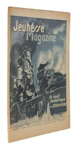 In-8 (19.5x26 cm), journal broché, couverture illustrée, n°11 du 'Jeunesse magazine', 2e année, 13 mars 1938, 32 pages, illustrations noir et blanc dans le texte ; rares rousseurs, très bon état.