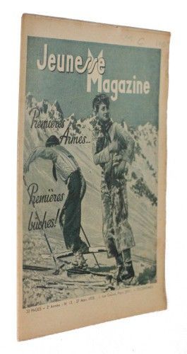 In-8 (19.5x26 cm), journal broché, couverture illustrée, n°13 du 'Jeunesse magazine', 2e année, 27 mars 1938, 32 pages, illustrations noir et blanc dans le texte ; rares rousseurs, bon état.