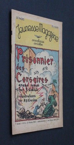 In-8 (19.5x26 cm), journal broché, couverture illustrée, n°8 du 'Jeunesse magazine', 2e année, 20 février 1938, 32 pages, illustrations noir et blanc dans le texte ; petit manque papier en...