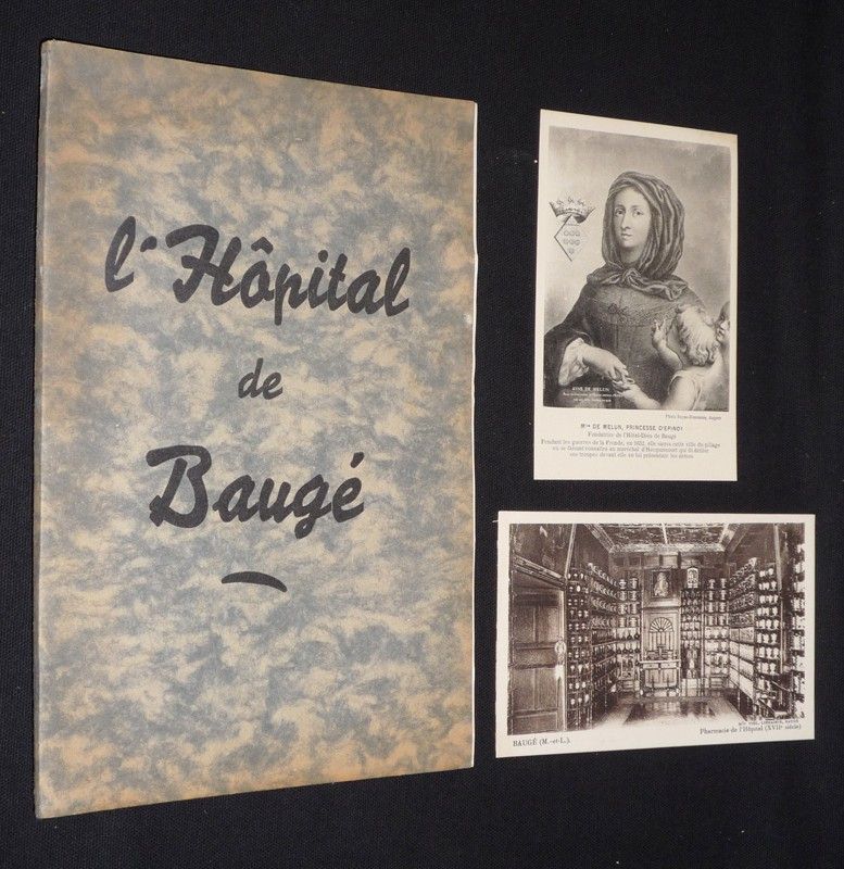 In-8 (15,8 x 24 cm), brochure, 29 pages, photographies monochromes hors texte, avec 2 cartes postales représentant la pharmacie de l'hôpital et le portrait de Mlle de Melun, princesse d'Epinoy, fondatrice de l'Hôtel-Dieu de Baugé ; corps d'ouvrage détaché de la couverture, brunissure au dos et au quatrième plat, assez bon état général.