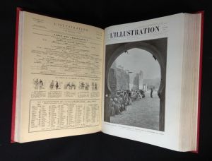 Trois volumes in-folio reliés demi-basane rouge, tome I : L'illustration du 2 janvier 1932 (n°4635) au 30 avril 1932 (n°4652). 538 pp. Tome II : L'illustration du 7 mai 1932 (n°4653) au 27 aout 1932 (n° 4669), 554 pp., tome III: du 3 septembre 1932 (n°4670) au n°4687 du 31 décembre 1932, 626 pages, couverture des numéros conservée, complet du N° de Noël, du Spécial Jardin (n°4656 - mai 32) et du Spécial Aéronautique (n°4681 - no. 32), nombreuses illustrations in et hors-texte en couleurs et noir et blanc ; ors des dos insolés un peu passés, coins et bords frottés, traces d'usage aux plats, intérieur globalement frais, beaux exemplaires.