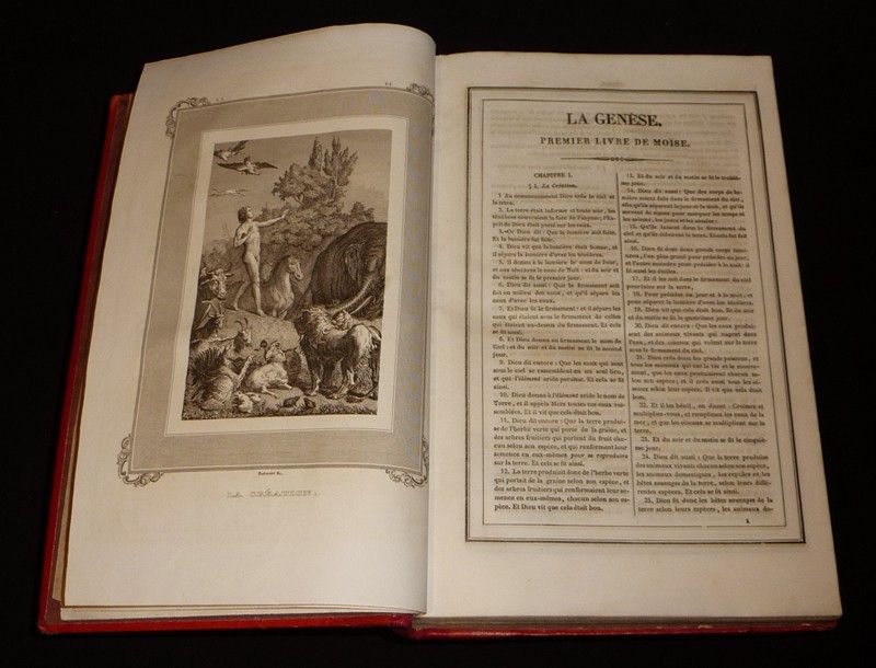Trois volumes in-4 (19 x 28 cm), reliure demi-maroquin à grain long, dos lisses ornés de dorures, 647+620 pages (pagination continue aux tomes 1 et 2), gravures en noir hors texte ; frottements aux coupes, dos et plats, petit trou dans le cuir et trace au dos du tome 1, par ailleurs assez bon état.