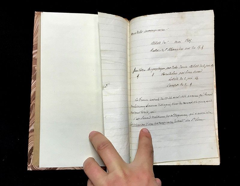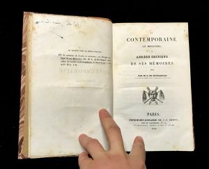 In-8 (13.5 x 21 cm), relié demi-basane, dos à 5 nerfs avec titre et auteur dorés, 476 pages, tranches marbrées, abrégé des 8 tomes des Mémoires d'une contemporaine, rédigés par l'aventurière néerlandaise Maria Elzelina Versfelt de Jongh, parues en 1827-1828, sous le pseudo de Ida de St-Elme. Sevelinges en a réalisé un abrégé à la 3ème personne, comme il l'a fait avec les mémoires de la Comtesse de Genlis et celles de Savary, l'ouvrage comprend une notice manuscrite sur Armand Malitourne + ex-libris ou ex-dono d'un membre de la famille de Sevelinges (l'auteur) ; petit manque à la dernière page en queue, rousseurs éparses, par ailleurs intérieur bien conservé, très bel état général.