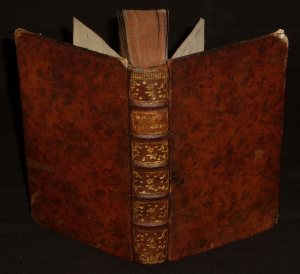 In-12 (10 x 16,5 cm), reliure plein veau, dos à 5 nerfs orné de caissons dorés et d'une pièce de titre, tranches mouchetées, 461 pages, texte en latin ; petits manques de cuir aux coins et à la coiffe supérieure, épidermures au quatrième plat, coupes frottées, par ailleurs assez bon état général.