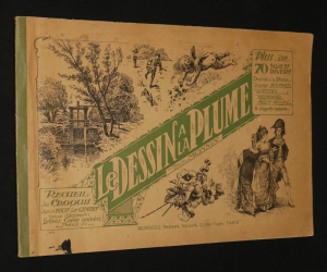 In-4 (27,8 x 18,5 cm), agrafé, 16 pages, sans date, recueil de croquis dessinés à la plume d'après Watteau, Boucher, Meissonier, Corot, Millet, etc. et d'après nature, sans texte ; tache d'encre au premier plat, quelques rares rousseurs éparses, bon état général.