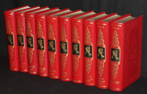 Deux volumes in-12 (11,2 x 17,7 cm), reliés plein cuir sous demi-jaquettes et rhodoïd, têtes bleues, texte établi et annoté par Henri Martineau, T1 : Armance / Le Rouge et le noir / Lucien...
