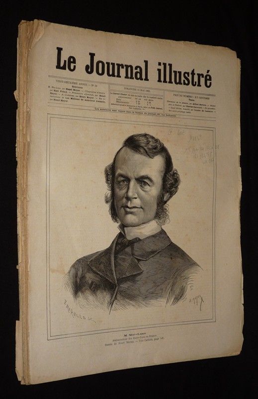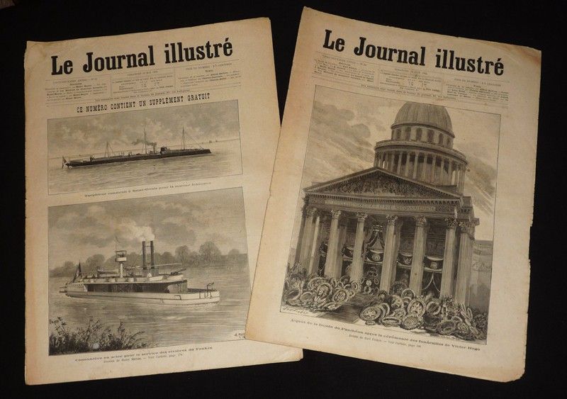 In-folio (29 x 39 cm), journal en feuilles, lot de 11 numéros de l'année 1885 du "Journal illustré", du n°19 (10 mai 1885) au n°21 (24 mai 1885), puis du n°24 (14 juin 1885) au n°28 (12 juillet 1885), n°32 (9 aout 1885), n°33 (16 août 1885), et n°38 (20 septembre 1885) ; quelques déchirures sans manque sur les bords des numéros, quelques rousseur, par ailleurs assez bon état.