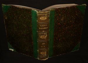 In-4 (23,5 x 30,8 cm), reliure demi-basane à coins, dos lisse orné de filets et fers dorés, 435 et 434 pages soit les deux semestres de l'année 1869 réunis en un volume ; épidermures sur le cuir, coupes frottées, quelques marques d'usage aux plats, des rousseurs aux tranches et en début et fin de volume, assez bon état général.