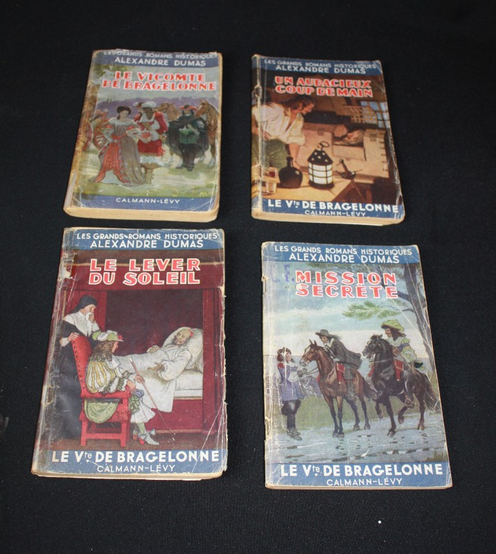 14 volumes agrafés in-12 de 128 pages chacun, pagination continue 1792 pages au total. Voici la répartition des titres : 1. Le vicomte de Bragelonne 2. Un audacieux coup de main 3. Le lever du soleil 4. Mission secrète 5. Fêtes et rivalités 6. Amour et ambition 7. Le moine mystérieux 8. Une fatale lettre d'amour 9. Un duel dans la nuit 10. La dame masquée parle 11. L'énigmatique prisonnier 12. Le sosie du roi 13. Le masque de fer 14. La fin des quatre, imprimé par Brodard et Taupin en 1948 et distribué par les N.M.P.P. ; dos du premier et dernier volume scotchés, ensemble propre pour des fascicules de cet époque.