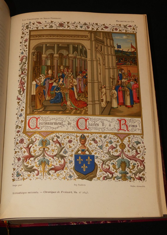 In-4 (20 x 28 cm), reliure demi-chagrin à coins, dos à 5 nerfs orné de fers dorés, VII-840 pages, ouvrage somptueusement illustré de 11 chromolithographies en couleurs, 12 lettrines et titres, 33 grandes compositions en noir et 252 gravures ; épidermure sur le cuir au premier plat, coins un peu frottés, par ailleurs bel exemplaire quasi sans rousseurs.