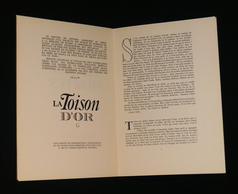 In-4 (18 x 26 cm), exemplaire en feuilles sous couverture à rabats, 20 pages, 1 des 100 exemplaires sur vélin, tirage total à 111 exemplaires ; dos et bords des plats insolés, par ailleurs bon état.