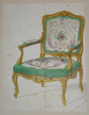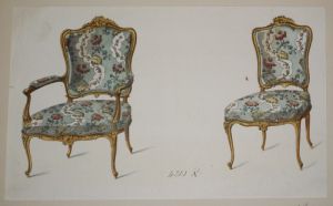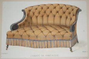 Litho XIXe siècle : Chaise, fauteuil et canapé Louis XIV (bois doré) - Meubles Victor Quetin