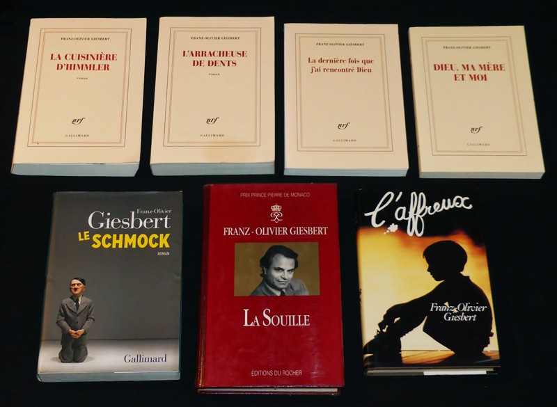 Lot de sept volumes in-8, contient chez Gallimard : La cuisinière d'Himmler, 2013 - L'arracheuse de dents, 2016 - La dernière fois que j'ai rencontré Dieu, 2018 - Le Schmock, 2019 - Dieu, ma mère et moi, 2011, chez France Loisirs : l'affreux, 1993, aux Éditions du Rocher : La Souille, 1998 (cartonné sous jaquette et rhodoïd) ; bon état.