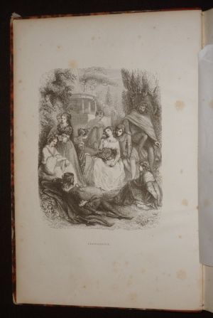 In-4 (19 x 27,3 cm), reliure demi-chagrin, dos à 5 nerfs orné de fers dorés, 562 pages, illustrations en noir de Baron, Johannot, Emy, Nanteuil, Grandville, Pinot, Girardet, Lepoitevin, Pauquet, Holfeld, etc. ; nerfs, coiffes et coupes frottés, quelques rousseurs éparses à l'intérieur par ailleurs assez frais, bon état général.