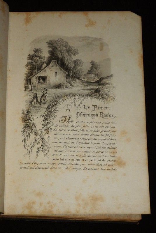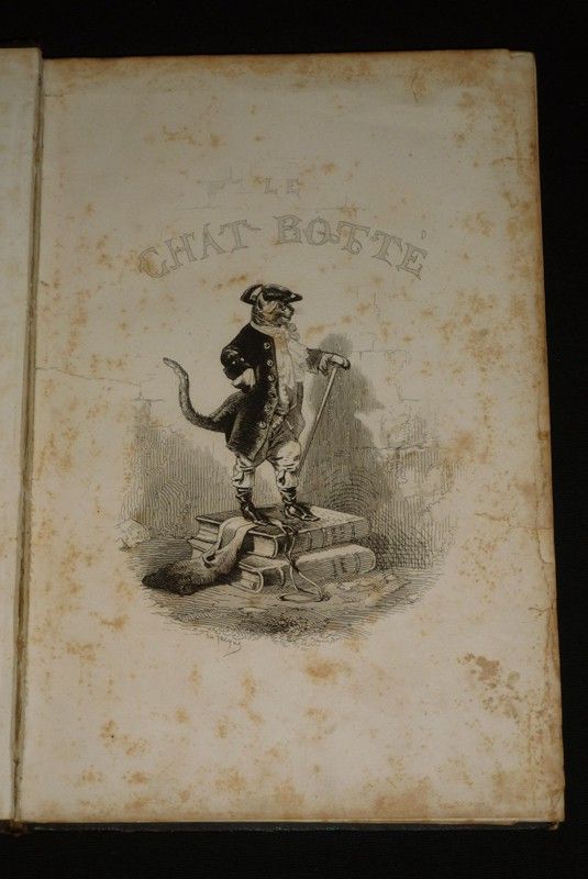 RARE. In-4 (18,3 x 26,7 cm), reliure demi-chagrin, dos à 4 nerfs, tranches dorées, non paginées, "un des ouvrages illustrés les plus recherchés" (Brivois), 1er tirage des illustrations, bien complet des hors textes (celui du Chat Botté a été relié en début d'ouvrage et non juste avant le conte), ce volume contient les contes suivants : Les Fées - Le Petit Chaperon Rouge - Barbe-Bleue - Le Chat Botté - La Belle au bois dormant - Cendrillon - Le petit Poucet - Riquet à la houppe - Peau d'Ane ; quelques épidermures sur le cuir, frottements sur le papier reliure aux plats, tampons sur 4 pages en début d'ouvrage, intérieur hélas bien roussi, en l'état.