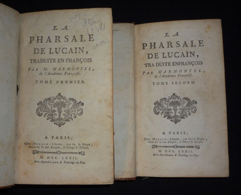 La Pharsale de Lucain, traduite en françois par M. Marmontel, de l'Académie Françoise (2 volumes)
