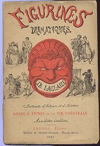 In-12 broché, couverture illustrée, édition originale, pas de grand papier annoncé, XIX & 296 pages, frontispice reproduisant la couverture, anedoctes inédites de la vie théatrale de l'époque ; non coupé, un mors usé, quelques léger manque sur une couverture légèrement salie, intérieur frais, bon état.