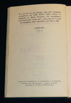 In-8 couronne, cartonnage décoré de l'éditeur d'après une maquette de Mario Prassinos, 286 pp., 1 des 550 sur Vélin, Édition originale de la traduction de Francis Ledoux ; Tampon de la bibliothèque centrale de prêt, scotch sur les gardes, cartonnage en bel état.