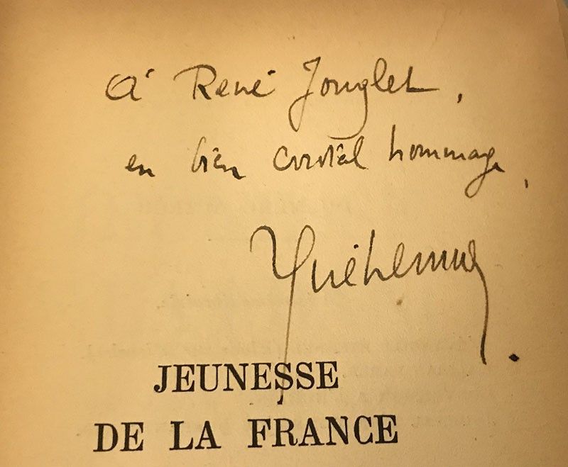 in-12 (12 x 18.7 cm), broché, 204 pages, non-coupé, envoi de l'auteur à René Jouglet, écrivain, à la fausse page de titre ; l'ouvrage est équipé d'un protège-livre, pliures au dos, bords frottés, quelques marques d'usage aux plats défraîchis, par ailleurs assez bel état.