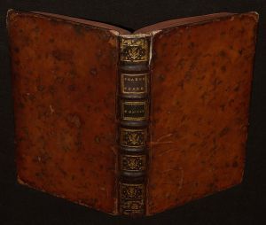 In-12 (13,3 x 20 cm), reliure plein veau, dos à 5 nerfs orné de caissons dorés, tranches rouges, gardes couleur, 244-227 pages, première traduction des oeuvres de Shakespeare par Le Tourneur, ce tome 14 contient Beaucoup de bruit pour rien, et Comme vous l'aimez ; manques de cuir à la coiffe et aux coins supérieurs, mors fendus en tête, par ailleurs assez bon état général.