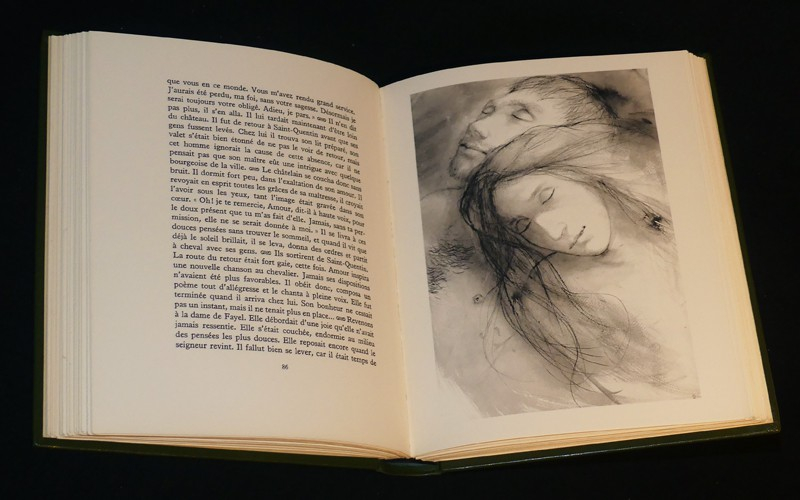 In-4 (20,5 x 24,5 cm), reliure décorée de l'éditeur pleine peau, dos à 4 nerfs, pièces de titre, tête dorée, sous emboîtage cartonné bordé du même cuir, 197 pages, sans date, roman du XIIIe siècle remis en bel ordre par André Berry et illustré par Michel Ciry ; très bon état.