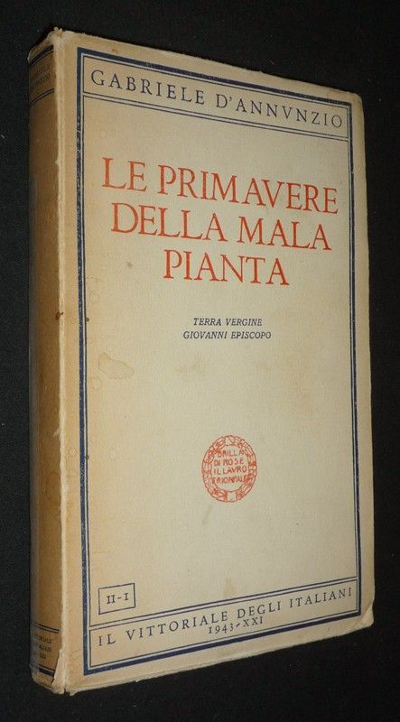 In-8 (12,7 x 20 cm), broché, couverture rempliée, 224 pages, texte en italien ; mors et bords des plats usés, réparation au ruban adhésif au mors inférieur, dos bruni, quelques traces sur les plats, état moyen.