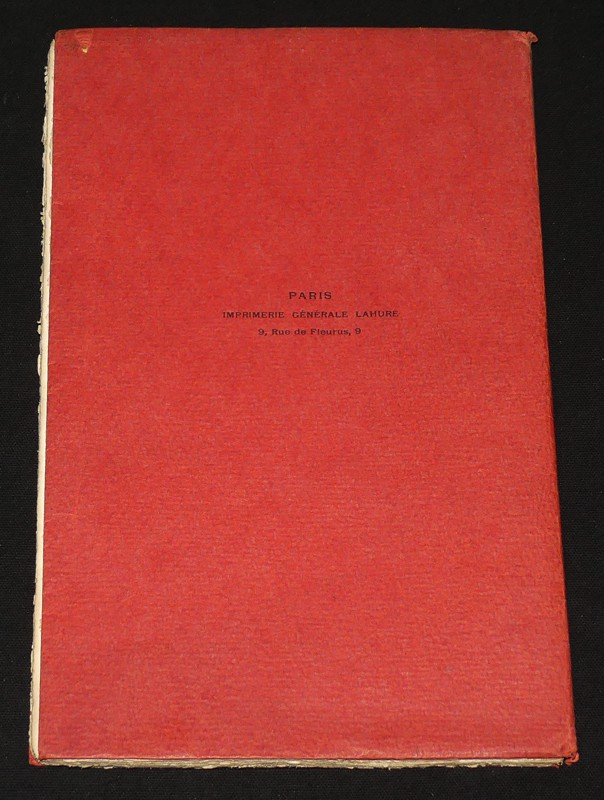 In-4 (18,3 x 29 cm), broché, 41 pages, ici l'un des exemplaires nominatifs, illustré de compositions par Alexandre Lunois ; mors supérieur très légèrement fendu en queue, reliure fragilisée, petite déchirure sans manque au quatrième plat, par ailleurs assez bon état.