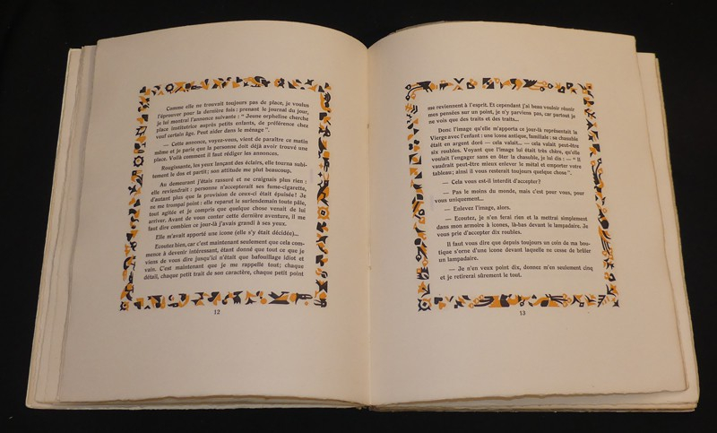 EXEMPLAIRE NUMEROTE. In-4 (24,2 x 29,2 cm), broché sous couverture rempliée, 90 pages, un des 275 exemplaires sur velin d'arches (ici le n°216), texte encadré de motifs noir et orange, illustrations hors texte de Gierlowski sous serpentes, un très beau livre soigné à la mise en page agréable ornementée de cadres, de lettrines et de cul de lampes ; coiffe inférieure très légèrement frottée, TRES BEL EXEMPLAIRE.