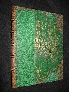 In-8, (17.5x23 cm), relié demi-chagrin à coins, dos à 5 nerfs titré, 71 pages, 1 des 700 exemplaires tirés sur papier teinté (tirage total de 730 exemplaires), ici le n°155, tête dorée, bandeaux, culs de lampe, édition originale, exemplaire à grandes marges, envoi de l'auteur ; cuir insolé, assez bon état.