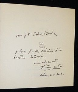 In-12 carré (14 x 14 cm), dos carré collé, 27 pages, exemplaire enrichi d'un envoi manuscrit et signé de l'auteur à Jean-Pierre Troadec ; fines pliures d'usage au niveau du mors, trace d'agrafe sur les trois dernières pages, très bel état.