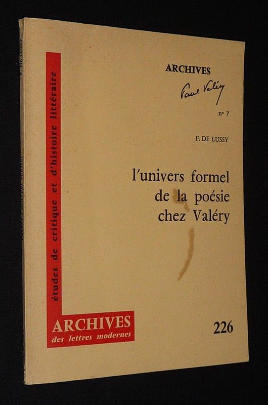 L'Univers formel de la poésie chez Valéry ou la recherche d'une morphologie généralisée (Archives des lettres modernes, n°226)