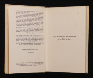 In-8 couronne, cartonnage décoré de l'éditeur d'après une maquette de Paul Bonet, préface d'André Salmon, frontispice de Picasso, Édition originale, 149 pp., 1 des 1050 sur Vélin (1070) ; très bel exemplaire, d'une grande fraîcheur.