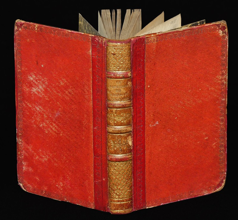 In-12 (10 x 16 cm), relié demi-peau rouge, caissons dorés et quatre nerfs au dos, gravure en frontispice, 276 pages, titre complet : "Le parterre du Parnasse françois ou nouveau recueil des pièces les plus rares & les plus curieuses, des descriptions, caractères, allusions, pensées morales, ingénieuses & galantes des plus célèbres poëtes françois, depuis Marot jusqu'à présent", étiquette d'ex bibliotheca A,selmi Vanden Bogaerde ; dos insolé, frottements aux nerfs et aux bords, coins usés, couverture un peu défraîchie, pages plus brunies qu'avec des rousseurs, assez bon état.