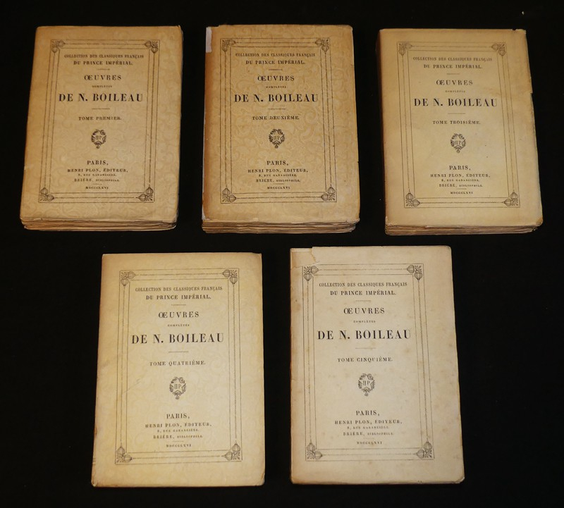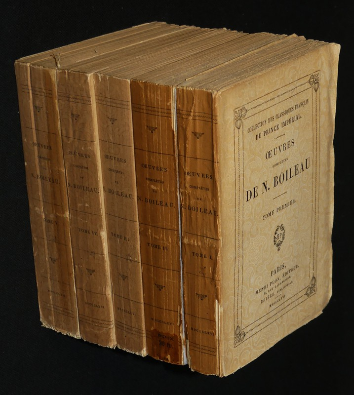 Cinq volumes in-12 (10 x 13,8 cm), brochés, en grande partie non coupés, 303, 414, 357, 368 et 556 pages ; dos brunis, petits manques aux mors du tome 1, réparation au mors supérieur du tome 2, petites déchirures au mors supérieur du tome 5 en tête et en queue, rousseurs aux plats du tome 5, par ailleurs assez bon état.
