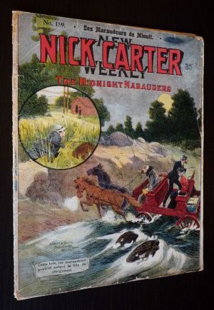 In-4 (21,8 x 27,5 cm), fascicule agrafé, 32 pages, sans date, n°135 de la 2e série de "Nick Carter", couverture illustrée pleine page ; dos usé, quelques petites traces sur le bord des plats,...