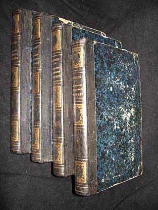 4 volumes in-8, (16x25 cm), relié demi-basane, dos titrés, caissons ornés, sans date, gravures en noir et blanc sous serpente ; manques papier sur les plats, décors aux dos légèrement passés, état très correct.